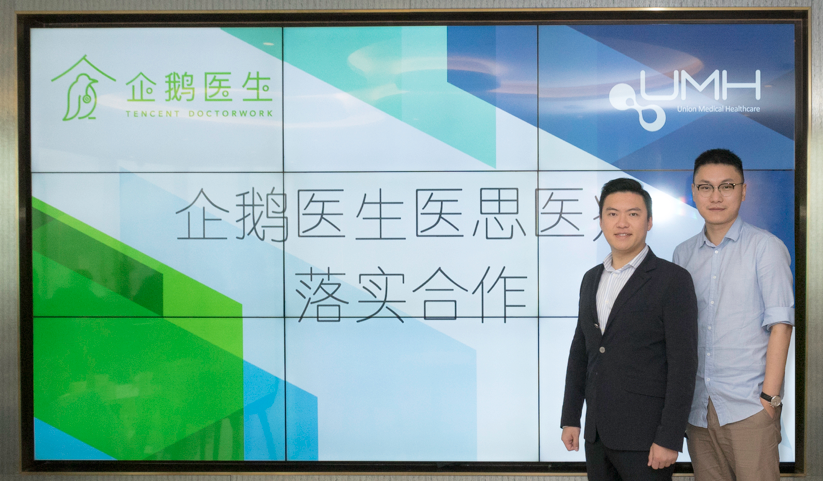 图片说明︰医思医疗主席、执行董事兼行政总裁邓志辉先生(左)及企鹅医生创始人兼行政总裁王仕锐先生(右)